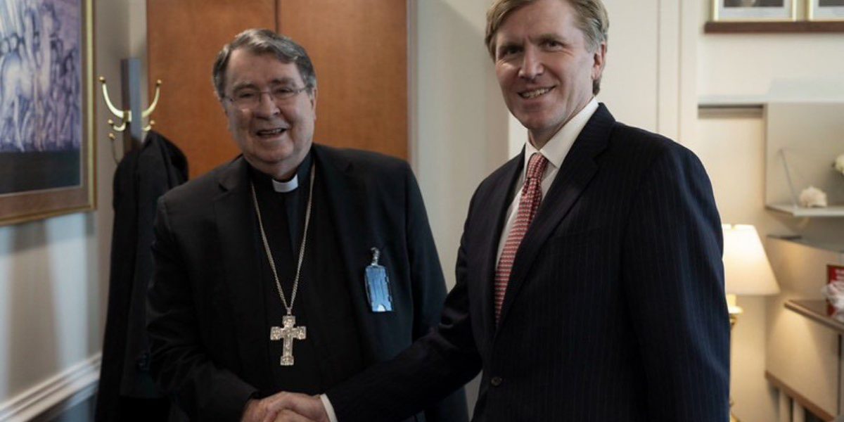 L’ambassadeur Burch, Ambassadeur des États-Unie près le Saint-Siège à Rome, a accueilli Mgr Caccia, qui est le nouveau Nonce apostolique aux États-Unis, remplaçant le cardinal Pierre. Ils ont échangé sur