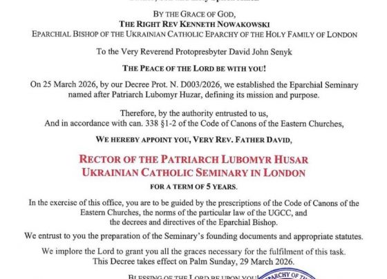 Londres aura donc son deuxième séminaire catholique. En effet, Mgr Kenneth Nowakowski, qui est l’actuel évêque de l’éparchie gréco-catholique ukrainienne…