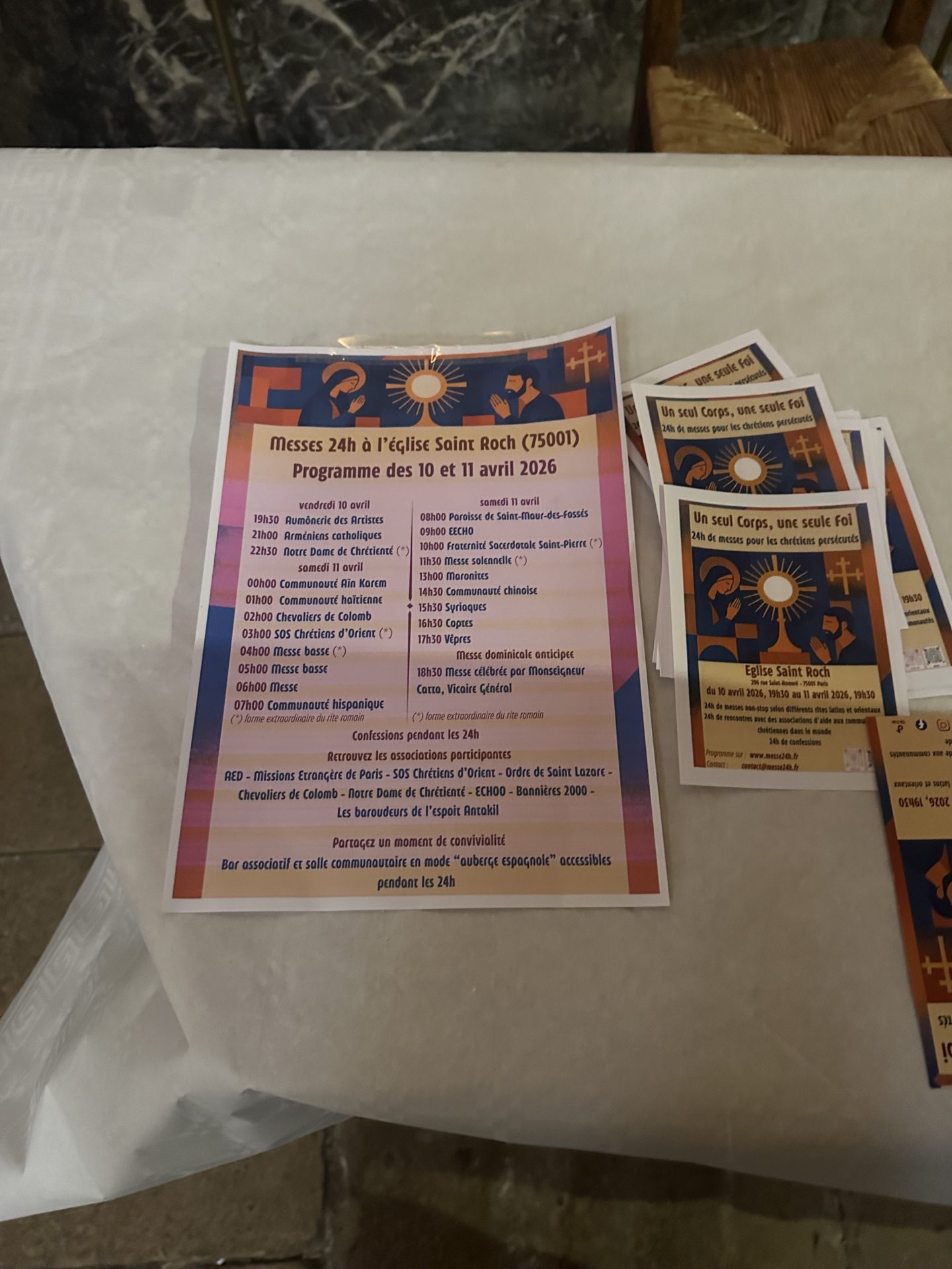 Plusieurs associations ou organisations partenaires de cet événement étaient ainsi présentes à l’église Saint-Roch à l’instar de l’Aide à l’Église en détresse (AED), des Missions étrangères de Paris (MEP) ou de SOS Chrétiens d’Orient. Cette initiative était également soutenue par Notre Dame de Chrétienté ou les Chevaliers de Colomb.